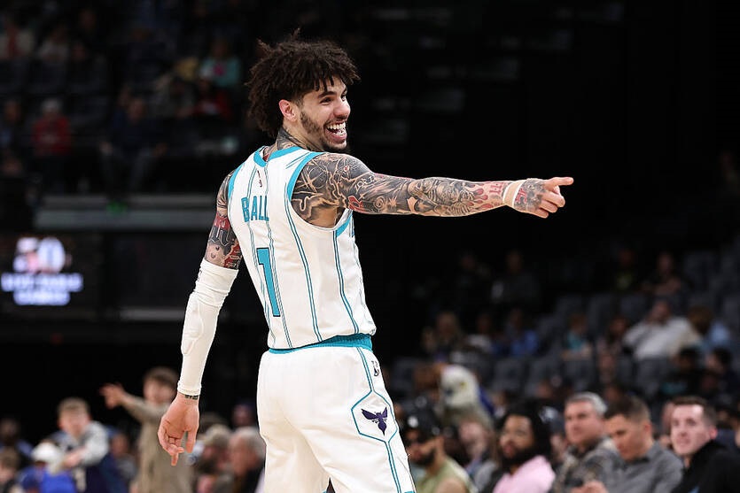 Захисник Шарлотт Горнетс Ламело Болл показово відрізняється в грі.