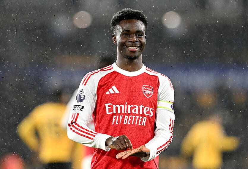 Букайо Сака став одним із п’яти найбільш високооплачуваних футболістів Прем’єр-ліги. Після продовження угоди з Арсеналом він тепер отримує 300 000 фунтів щотижня.