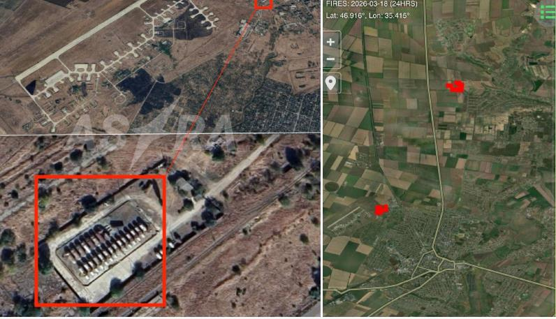 Супутники зафіксували два вогнища пожежі – один із них у районі місцевого військового аеродрому.